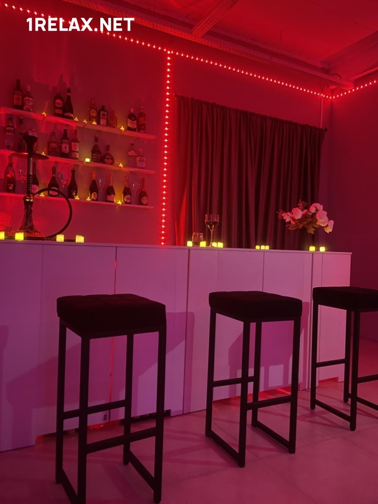 В заведении есть зона ресепшен. Там можно познакомиться с программами и мастерами, выбрать алкогольный напиток. Администратор проследит, чтобы отдых был конфиденциальным.