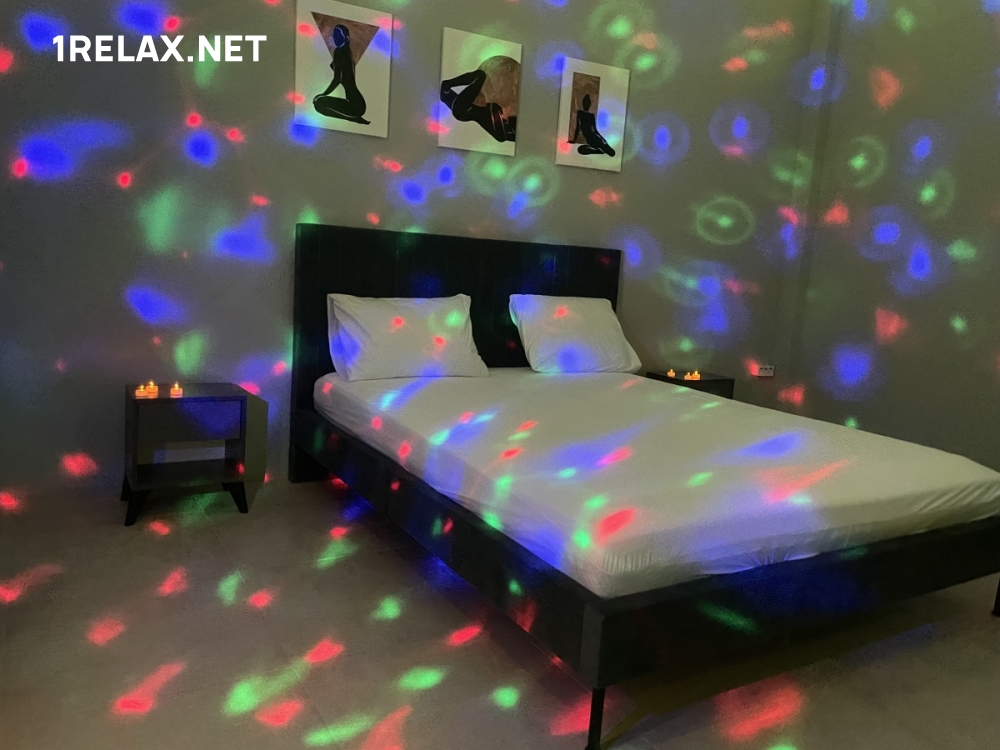 В заведении три уютные комнаты с изысканным интерьером. С первых минут гостя окутывает атмосфера блаженства и неги. В каждой комнате есть удобные кровати, диваны, тумбы и кофейный столик. Довершает впечатление неяркая подсветка и мягкая завораживающая музыка.
