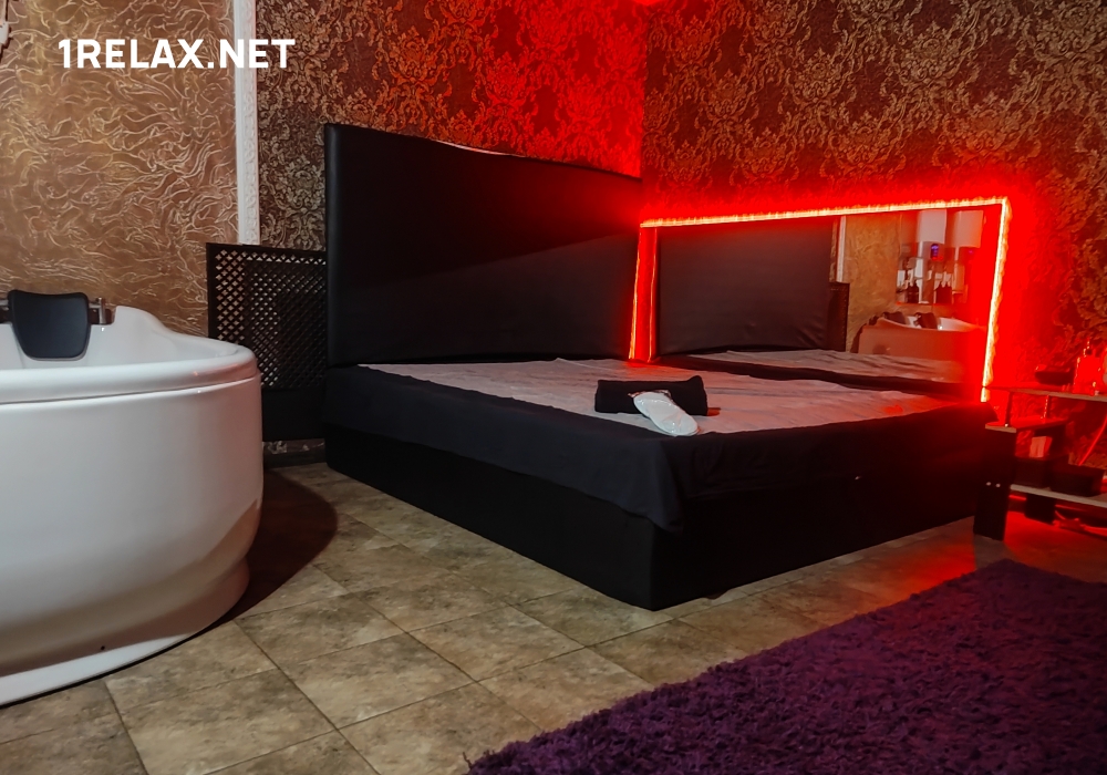 В каждой комнате есть просторная кровать. Комфортная температура поддерживается кондиционером. Для водных процедур предусмотрены джакузи, в которых так приятно расслабиться вместе с очаровательной девушкой.